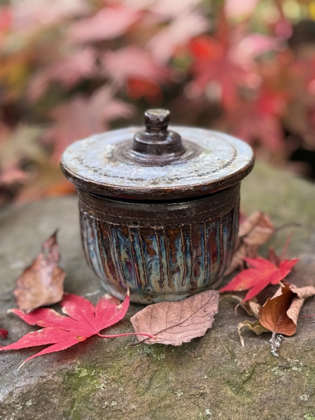 This lidded jar feels quietly ceremonial—an object that invites you to slow down and look closely 🍂